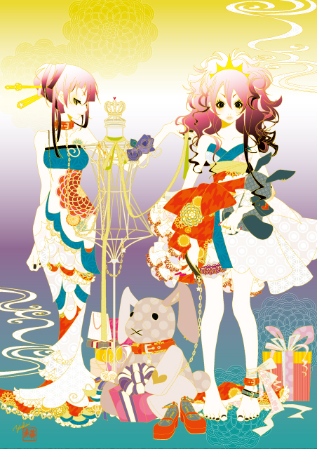 A graphic unit that produces works on the theme of “Extremely Attractive Kyoto.”Information obtained through studies of history, folklore, Japanese-style hairdos, etc. is expressed in their works.Their pictures drawn in richly colored gradation are appreciated widely by many people and organizations, from a Buddhist temple to a famous brand in Paris.Their recent works include “fusuma painting at Zuishin-in Temple,” “design for maiko’s Kimono,” “design for Red Cliff goods,” and “design for a party of colette paris.”
