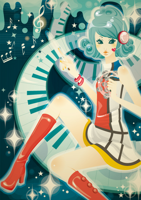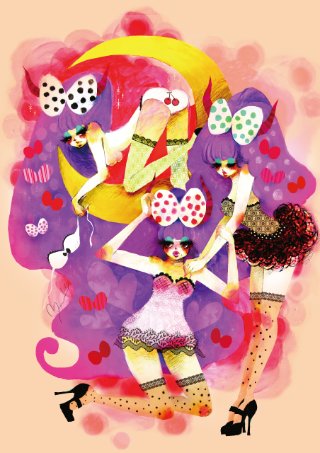 After graduating from Musashino Art University, she became a freelance illustrator in 2006. She draws POP, retro, and a little sexy girls seen with the eyes of the same sex, using Illustrator.She is active based in Tokyo in drawing illustrations for magazine covers, books, ads, CD jackets, and websites.