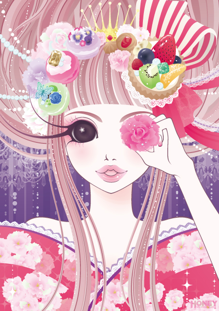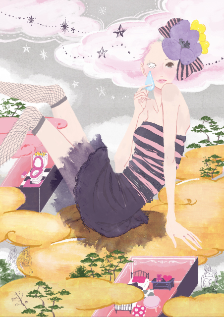 Born in Kobe. Resident in Tokyo.Graduated from Design Department of Kyoto University of Arts.After working for a stationery maker, she became a freelance illustrator in 2004. She produces shop visuals directed at fashionable young women who gather at Shibuya 109-2 and ITS’DEMO, etc.Also she works for ads, shop signboards, product packages, publications, websites, CD jackets, corporation collaboration goods, etc.She is especially good at expressing a women’s world which is not only modern and shining but also has a nostalgia for girlhood.