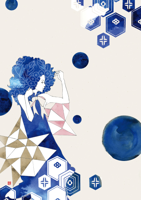 Born in Tokyo in 1980. While emphasizing interest as a picture, she draws illustrations expressing unique essences of Japanese culture, such as wabi, sabi, kare, and iki in a modern way. The pattern of her works can be categorized between design art and “Japanimation” (Japanese animation and manga).